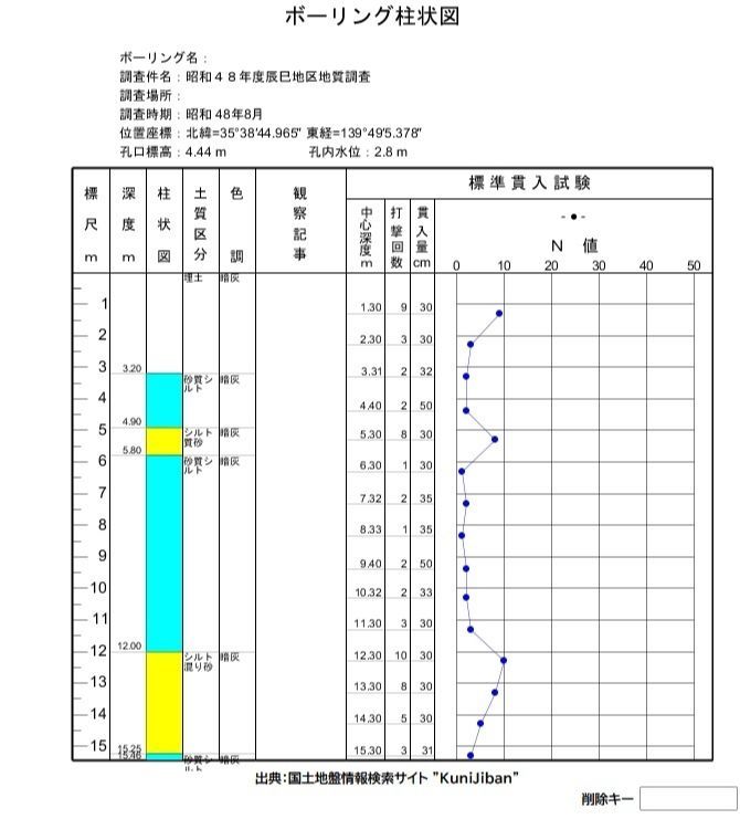 2023/01/23 地盤情報ナビでは下記のデータを更新/追加いたしました。 ボーリングデータ:「一般財団法人 国土地盤情報センター」で公開されている国土交通省の全国のボーリングデータ約6万本と 静岡県のボーリングデータ約1000本を追加しました。 浸水想定区域:「ハザードマップポータルサイト(https://disaportal.gsi.go.jp/hazardmap/copyright/copyright.html)」で公開されている 「洪水浸水想定区域」、「高潮浸水想定区域」、「津波浸水想定区域」、「土砂災害警戒区域」を追加しました。 |