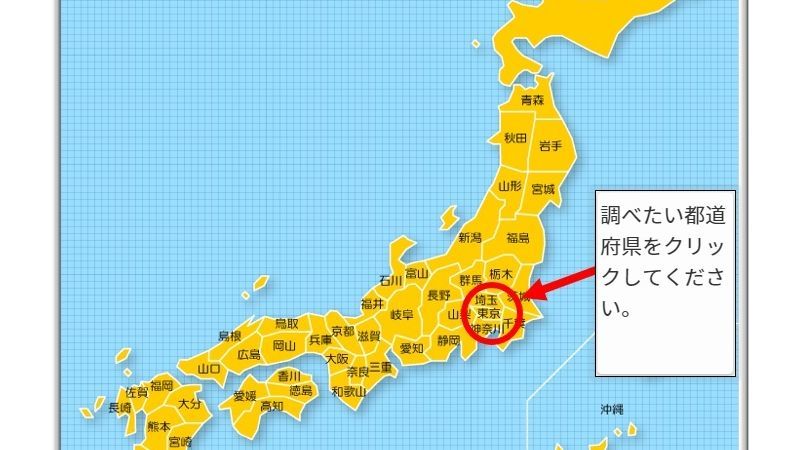 1.全国図から東京都を選択してください。なお、ここで表示される費用は、あくまで「全国標準積算資料」(国や地方公共団体対応)に基づいたもので、一定の目安として参考にしてください。